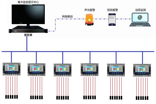 變壓器繞組及電纜接頭溫度監(jiān)測報警系統(tǒng)采用漢光專用熒光光纖測溫探頭進行敷設(shè)。每個變壓器采用一套熒光光纖測溫主機,HKFO-600YG系統(tǒng)接入后臺通過服務(wù)器進行管理。當(dāng)發(fā)生溫度異常警報時可聯(lián)動聲光、短信報警功能,報警信息將發(fā)送到運維用戶手機上,也可通過電腦主機遠(yuǎn)程監(jiān)控查看現(xiàn)場狀態(tài)。